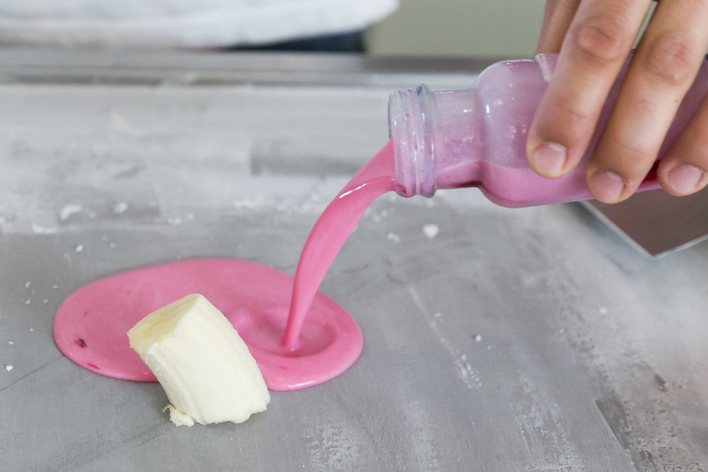 „Pirmas dalykas, kurį verta pabrėžti, tai, kad skiriasi pats gaminimo būdas. Ant šaldomosios keptuvės užpilama vanilinio plombyro, tuomet dedami švieži ingredientai.