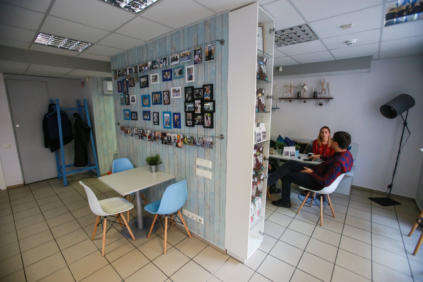 Jie juokėsi – anksčiau šioje vietoje buvo soliariumas, išmargintas ryškiomis spalvomis, tad jiems teko gerokai padirbėti, norint paversti patalpas šviesiomis ir estetiškomis.