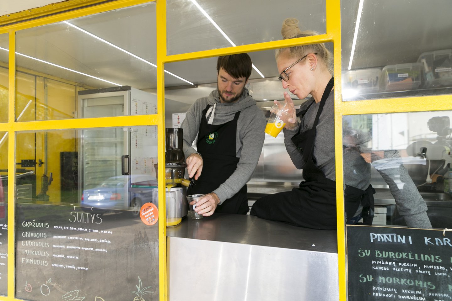 Verslininkus stebino žmonių nuostaba pamačius šviežiai spaustas sultis ar patiekalus be mėsos. Pora nevengia klientų klausimų, leidžia nusifotografuoti meniu, mat tiki, kad jis motyvuos klientus pasigaminti sveikesnio maisto. Prie autobusiuko pastato ir kėdutę vaikams, kad jie galėtų palypėti ir stebėti gamybos procesą.