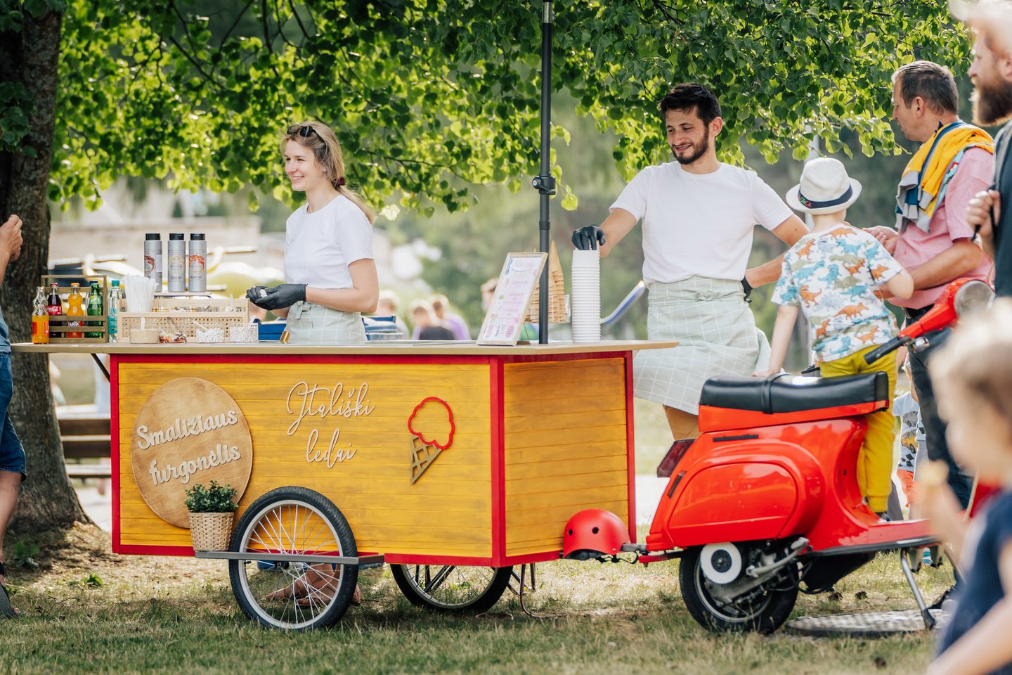 O štai Anastasijos ir Arnoldo Mikelkevičių ledų furgonėlį jau trečią sezoną galima išvysti miestų šventėse ar mugėse.