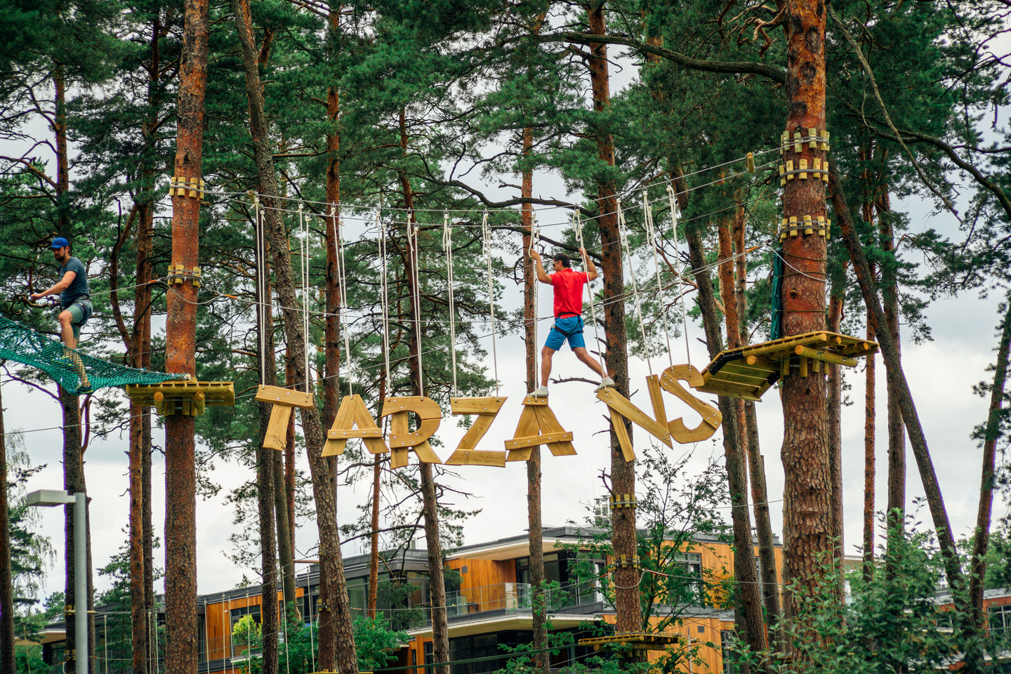3. Dzintarų miško parke be pasivaikščiojimo, pasivažinėjimo riedučiais ir lankymosi apžvalgos bokšte, galima dar išmėginti savo jėgas nuotykių parke „Tarzanas“, kuriame galima apsilankyti nuo gegužės 1 d. iki rugsėjo 30 d. Čia kliūčių trasos skirtos ir mažiesiems, ir dideliems. www.tarzans.lv/jurmala. Adresas: Lazdonas g.