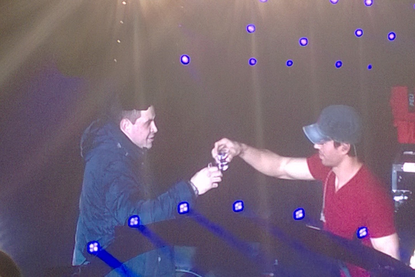 Netrukus padarė tai, kas jau tapo "firminiu" šių gastrolių triuku – iš publikos pasikvietė žiūrovą, kuriam pasiūlė kartu išgerti.