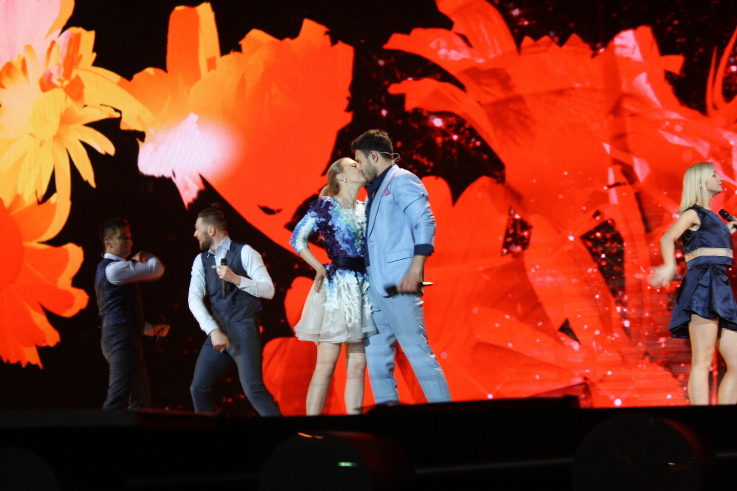 „Jis ir pradėjo bėgti. Bet, ačiū Dievui, ne išorėn, o į gerklę, nurijau kelis lašus“, – juokėsi Monika, paraginusi Vaidą nuo šiol ją scenoje bučiuoti atsargiau. Juk kraujas ant veido „Eurovizijoje“ būtų tikra nelaimė.