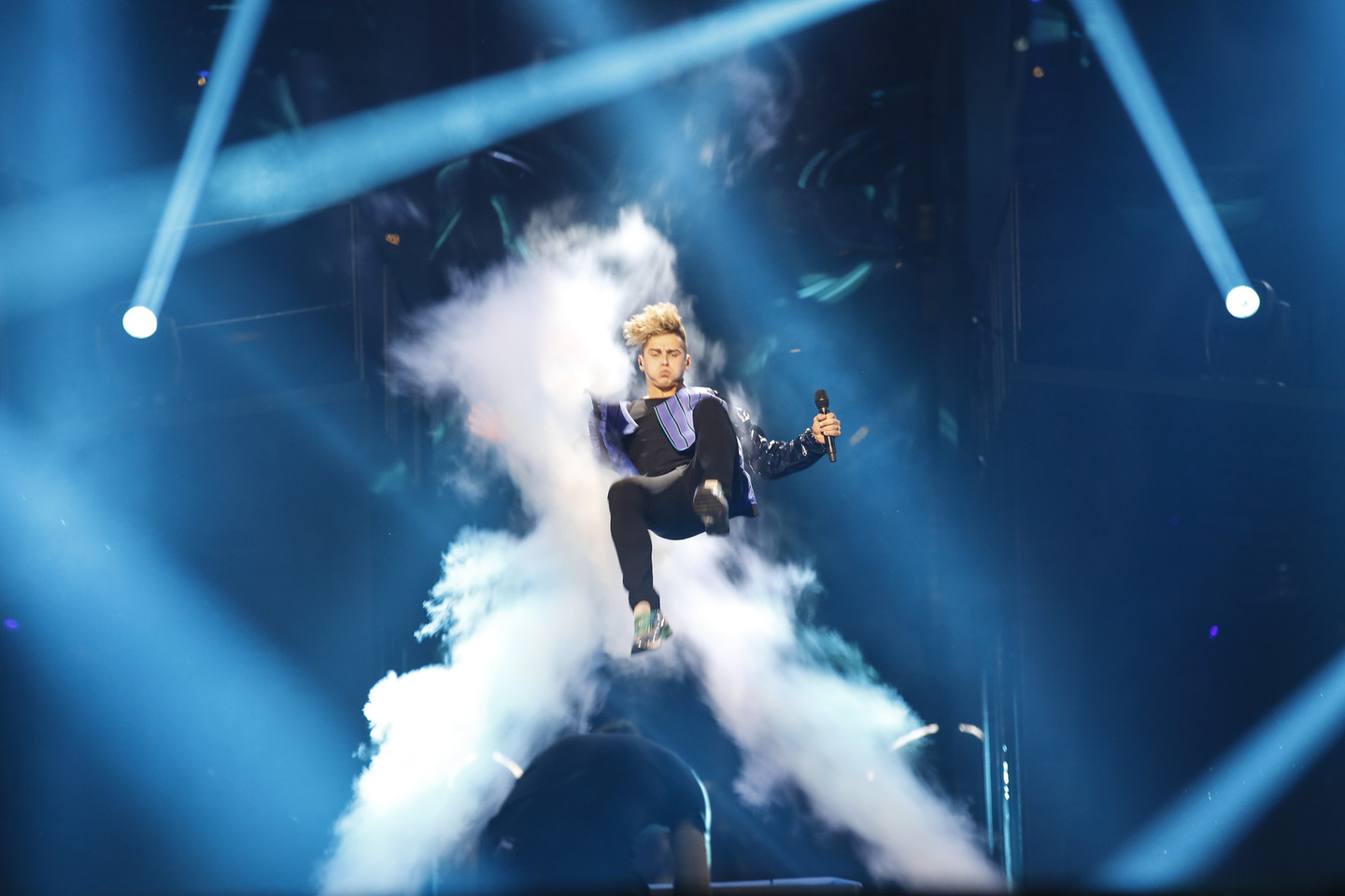 Šįkart dainininkas visus tris kartus pademonstravo savo salto – šuolį nuo batuto, kuris dabar jau aptrauktas tamsia medžiaga ir nebekrinta į akis.