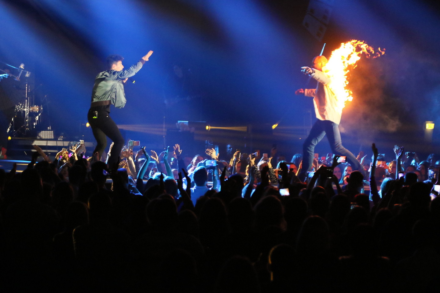 Apie papildomus koncertinio turo pasirodymus Panevėžyje ir Alytuje pasirodžius informacijai spalio mėnesį, atlikėjas žadėjo efektingą šou. Ir tai išpildė jau koncerto pradžioje – nusileido iš arenos palubės, atlikdamas garsųjį savo salto.