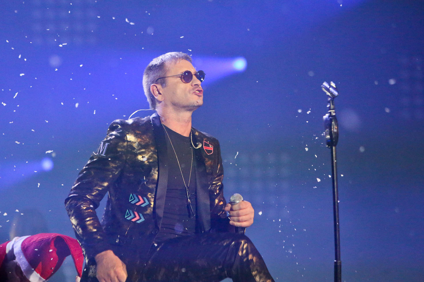 pasirodymas gyvenime, svaido savitą humorą, daug kalba. Užvesti žiūrovai nuo pirmų žodžių įsijautė į jo nuotaiką, kartu dainavo ir šoko. Juos džiugino pučiamas dirbtinis sniegas, gausiai krentantis konfeti.