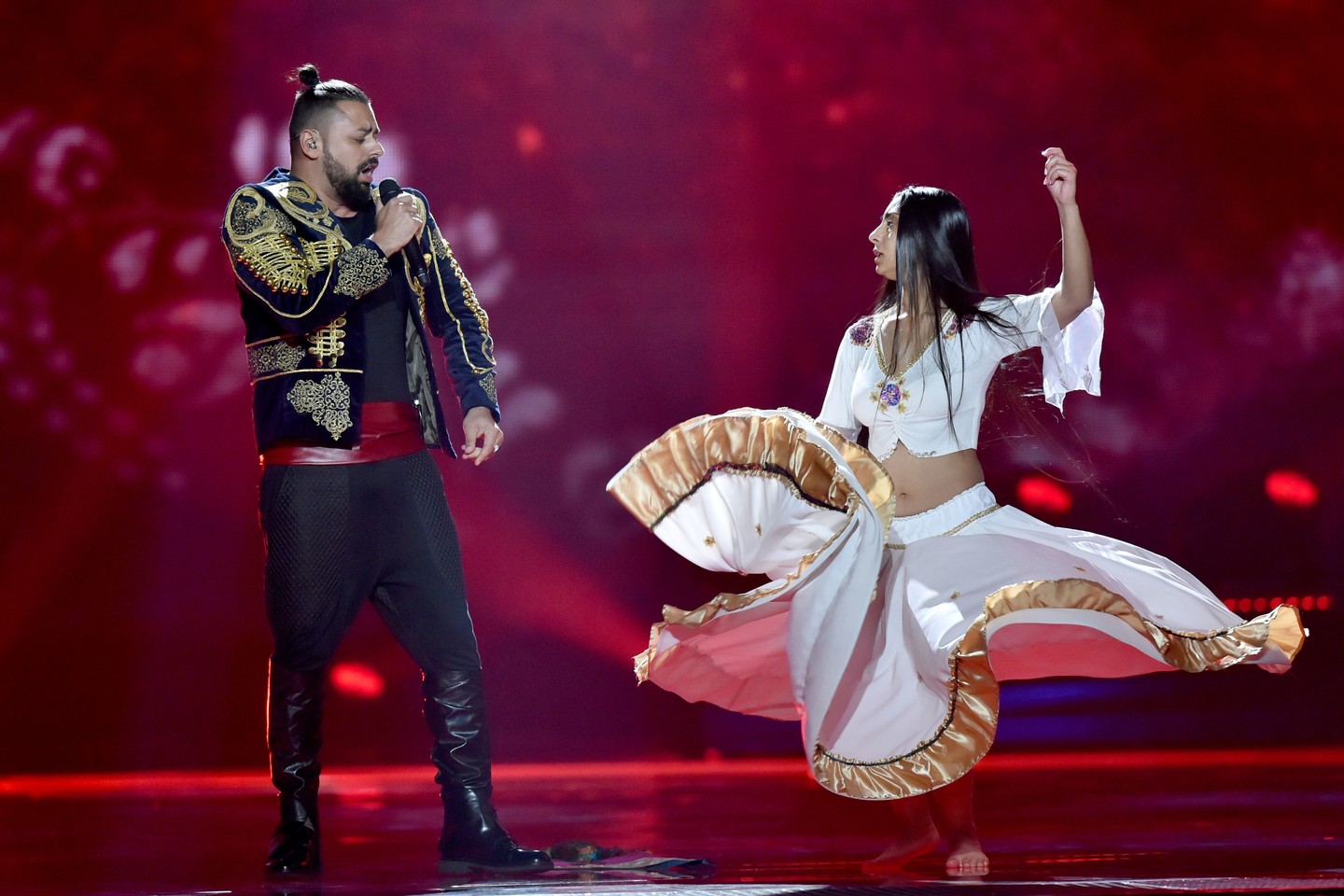 Armėnė Arcvik, kurios šou režisuoja pernai Donatui Montvydui pasirodymą ruošusi švedė Sascha Jean Baptiste, šaudo iš visų ginklų – scenoje sproginėja bene daugiausiai ugnies efektų per visą šių metų „Euroviziją“. Aplink atlikėją raitosi dvi seksualios šokėjos, kiek neįprasto skambesio dainoje „Fly With Me“ jaučiasi rytietiškų ritmų įtaka.