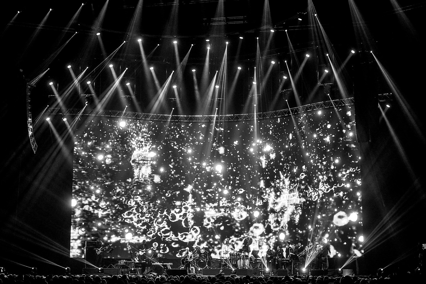 Scenoje – didžiulis ekranas, kuris nuo koncerto pradžios rodė vaizdo projekcijas ir iš arti filmuojamus muzikantų veidus.