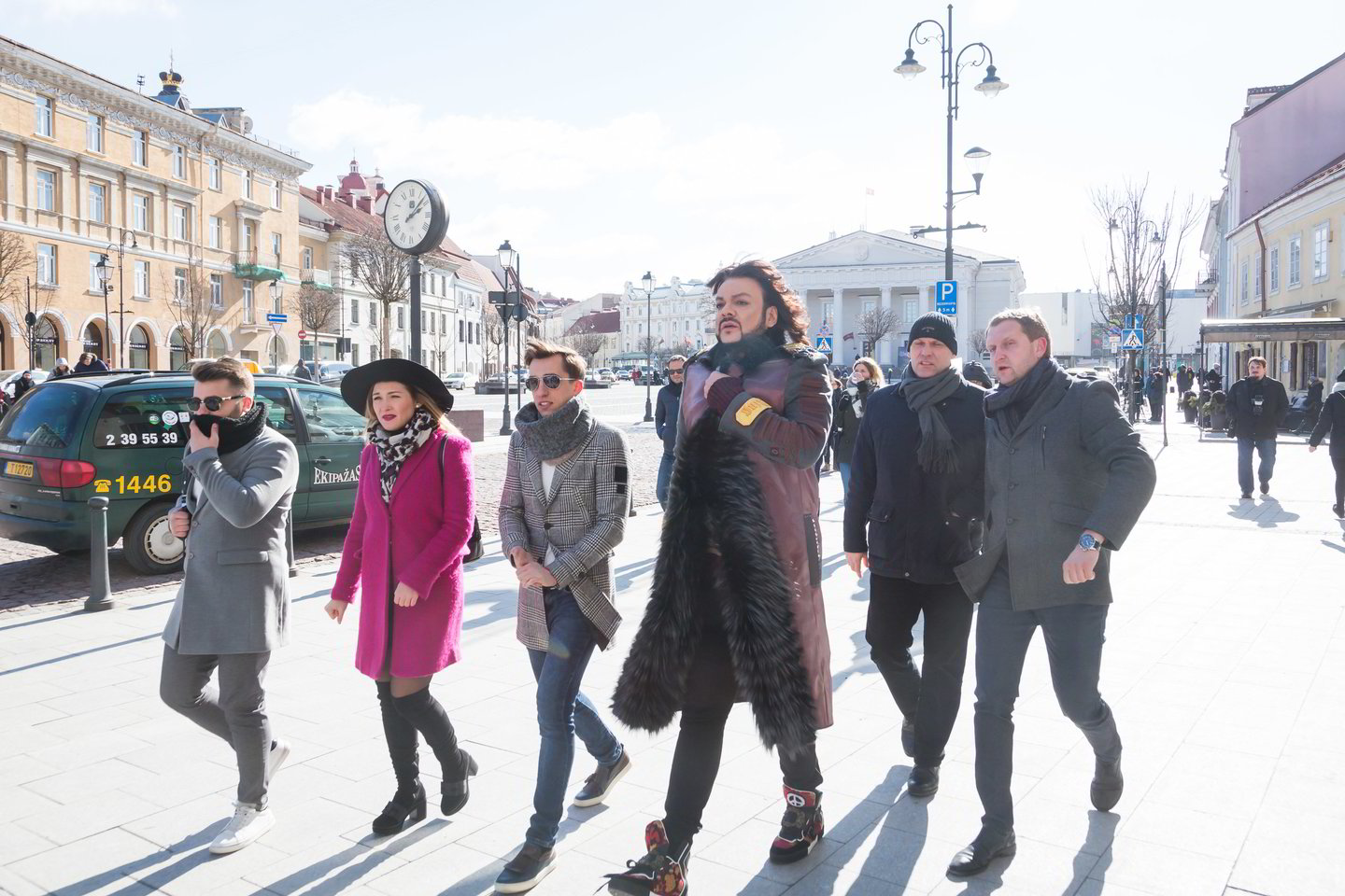 Praėjusį penktadienį į Vilnių atvykęs F.Kirkorovas, kaip visada, sukėlė cirką – sostinės oro uoste fotografams pozavo vilkėdamas sunkiai nupasakojamą drabužių derinį, pasidabinęs kepuraite nuo saulės ir spindinčia karūna.