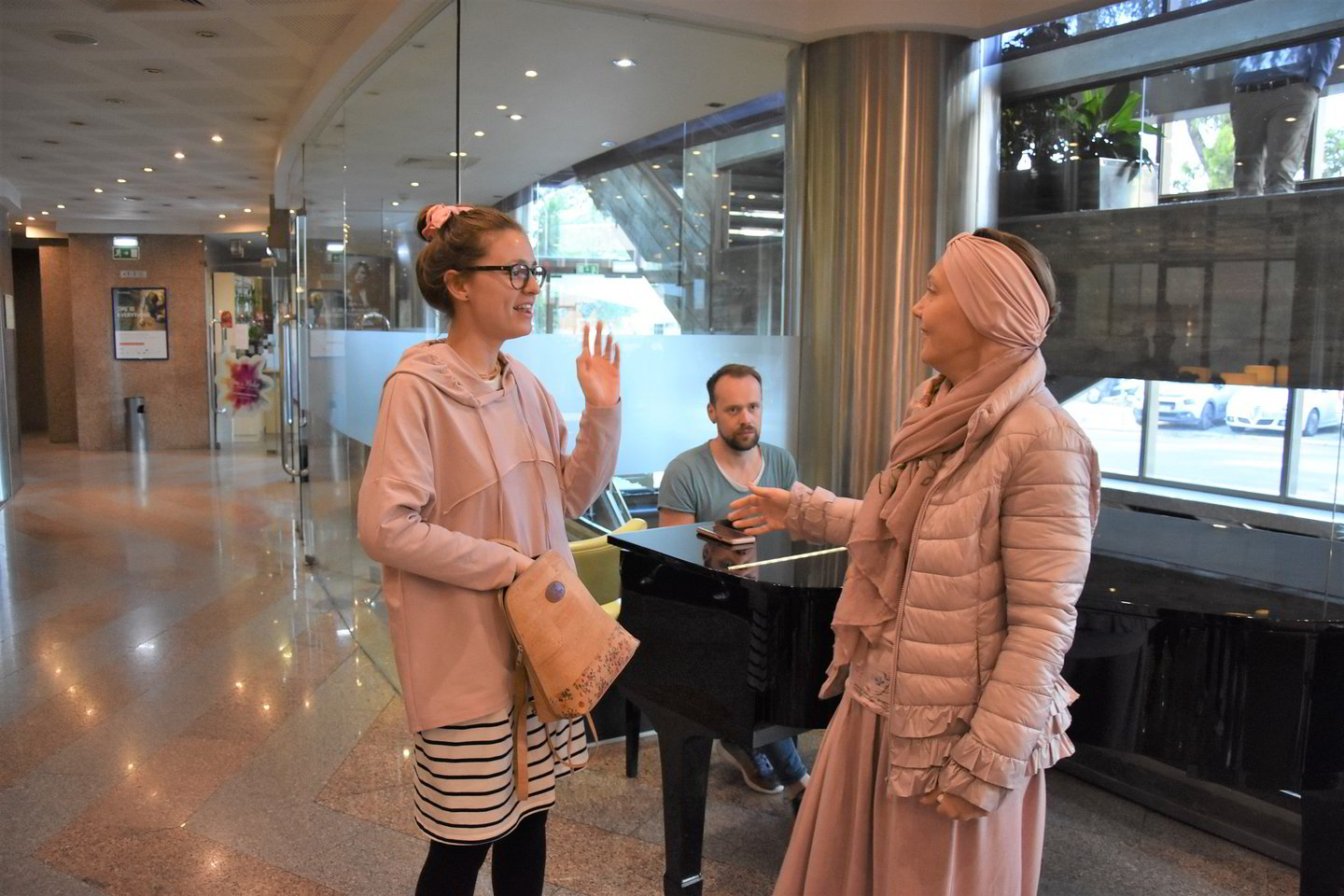 Prieš tai ji su dainos „When We're Old“ autoriumi, kompozitoriumi ir pianistu Vytautu Bikumi, viešbučio fojė dainavo „su gimimo diena“ - savo pasirodymo režisierei ir artimiausiai pagalbininkei Rasai Micachienei, kuriai pirmadienį sukako 49-eri.
