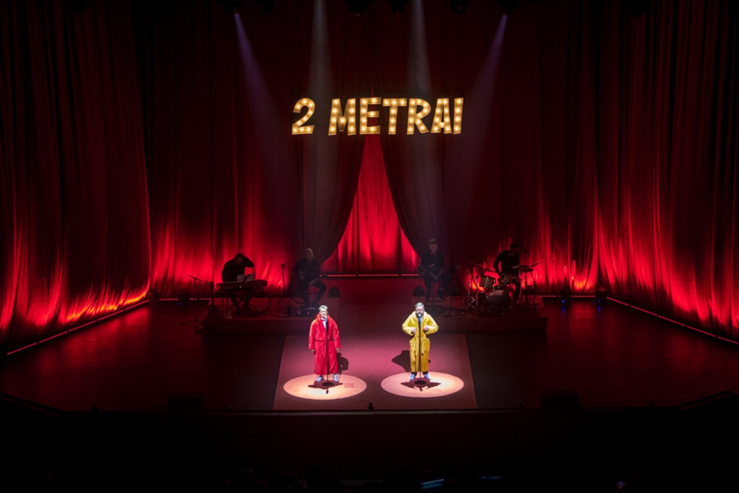 Projektas „2 Metrai“ – tai unikalus humoro ir originalių muzikinių interpretacijų kupinas pasirodymas, kuriame klausytojai turėjo galimybę išgirsti ne tik smagias, populiarių dainų aranžuotes, bet ir originalias, būtent šiam pasirodymui sukurtas dainas. Tai – ne tik koncertas, bet ir dviejų scenos grandų komedija, spektaklis ir improvizacija viename.