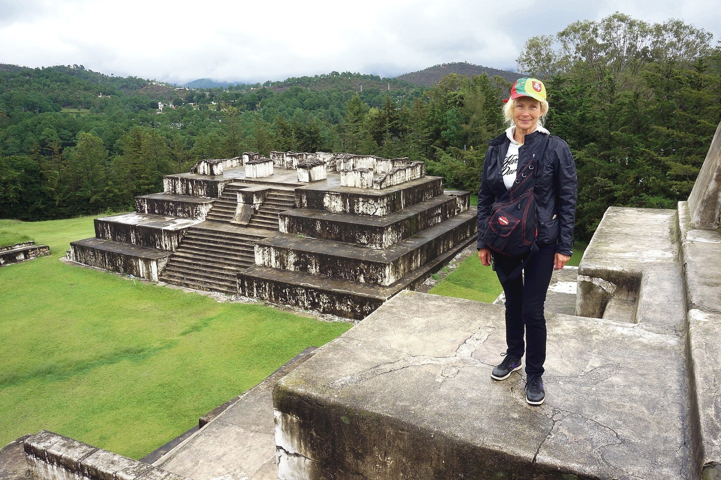 Kitą dieną vėl lijo, bet vis tiek išsikvietėme taksi ir nuvažiavome į senovinį Sakuleu miestą pažiūrėti majų piramidžių. Jos išsidėsčiusios kalnuose tokioje vietoje, nuo kurios į visas puses atsiveria nuostabus kalnų ir žaliuojančių slėnių vaizdas.