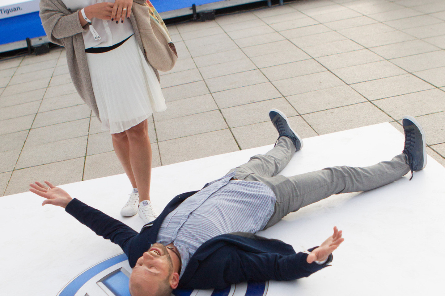 „Į pristatymus automobiliai paprastai įvažiuoja, kai kada jie yra iškilmingai atvežami. Iš dangaus nusileisti kol kas nebandė nė vienas. Naujasis „Tiguan“ automobilis skirtas nuotykių nebijantiems žmonėms, kurie keliauja ten, kur norisi ir kaip norisi. Tokio automobilio ir pristatymas turi būti išskirtinis“, – sakė „Moller Baltic Import“ pardavimo vadovas Baltijos šalyse Justas Nekrošius.