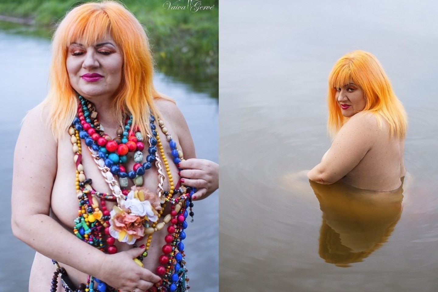 Nuoga nusifotografavusi D.Bilevičiūtė šypsosi, kad tokia fotosesija netikėta ir jai pačiai. Kai Daina įsivėrė auskarą į bambą, viena moteris vis klausinėdavo, kur tas auskaras, mat jo nebuvo matyti.