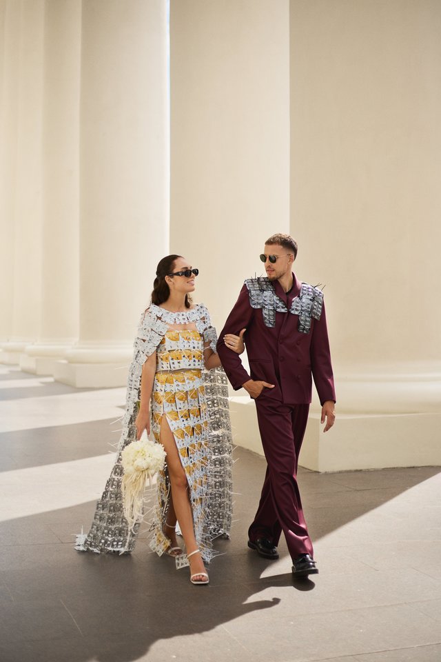 Liepos 25-oji buvo ypatinga diena, ne tik jaunavedžiams ar projekto organizatoriams, bet ir visiems prie šventėms prisidėjusiems. Dizainerė Rimantė Rimgailaitė pabrėžia, kad kurti vestuvinius apdarus – itin atsakinga užduotis. „Šį kartą emocijų buvo dar daugiau nei įprastai, nors suknelės idėja gimė anksčiau nei jaunoji – ruošiantis Rygos mados savaitei. Vėliau sukūrėme ir tvarumo principais paremtą jaunikio kostiumą. Visa vizija – nuo techninių sprendimų iki estetikos – galiausiai virto unikaliu vestuvių įvaizdžiu, kuris lydėjo jaunuosius iki altoriaus.“