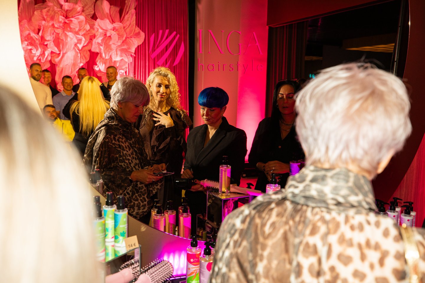 Kviestinė publika nekantriai laukė, kada vakaro šeimininkė susirinkusiems praskleis paslapties skraistę, ir parodys dvejus metus atsakingai kurtus gaminius: „Inga Hairstyle“ atkuriamąją plaukų priežiūros liniją, kurią sudaro šampūnas, kondicionierius, kaukė ir purškiama nenuplaunama kaukė.