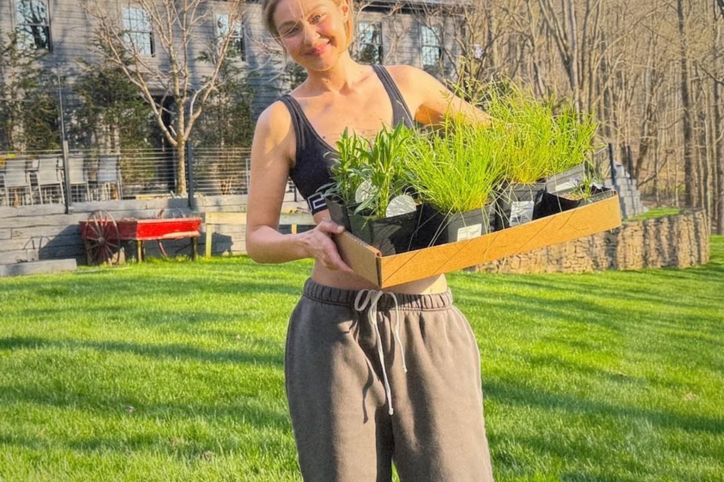 Kartu su seserimi manekene Bella Hadid ten ji yra pasodinusi per 1,5 tūkst. levandų krūmų, uogakrūmių, taip pat augina saulėgrąžas ir jurginus.