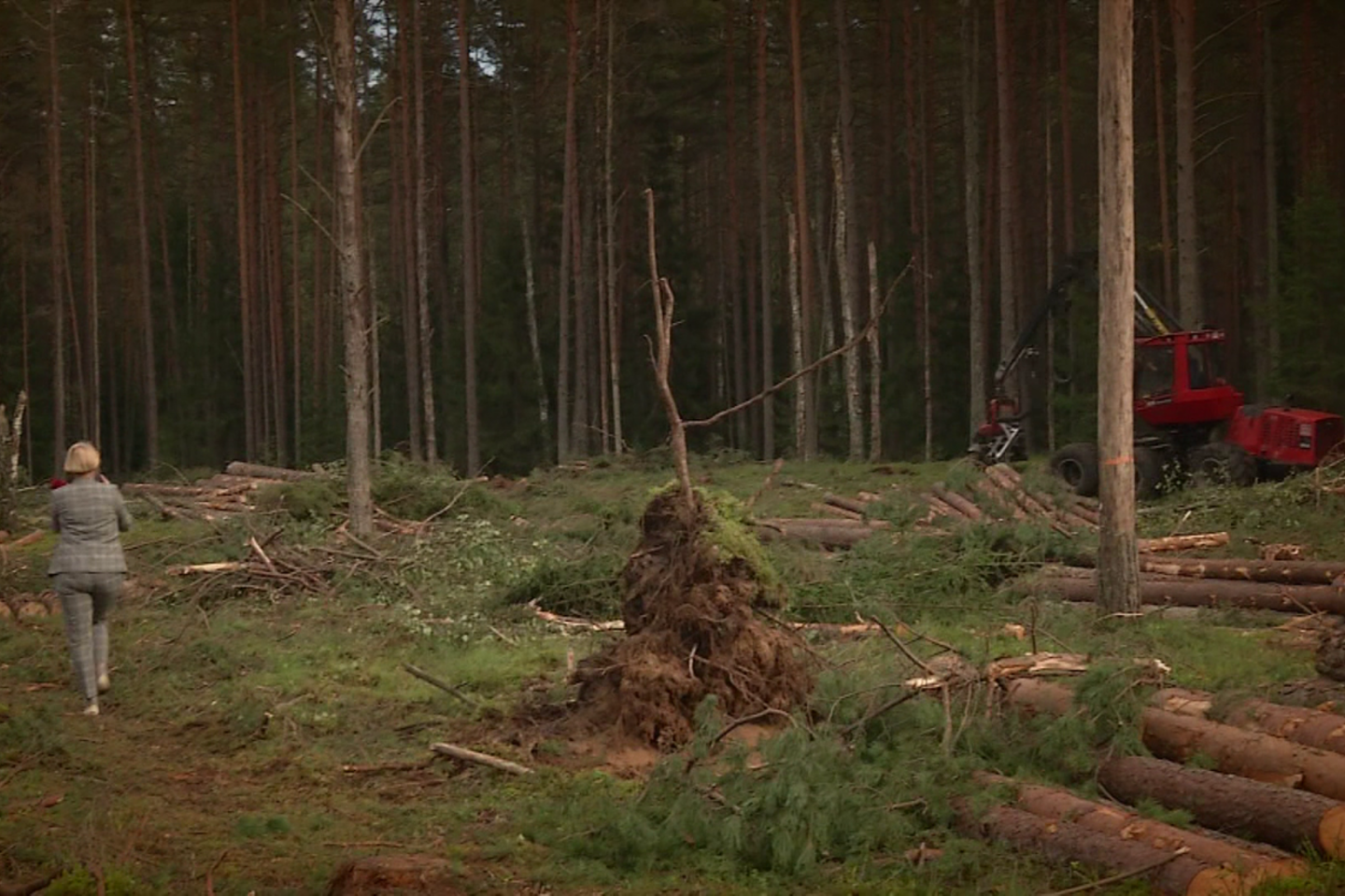 „Naktį šitie medžiai iškeliaus Latvijos supirkėjui, kuris per dieną priima medienos iš dešimties tokių plynių“, – pasakojo netoli nuo kirtavietės gyvenantis biologas, miškininkas Andrejus Gaidamavičius.