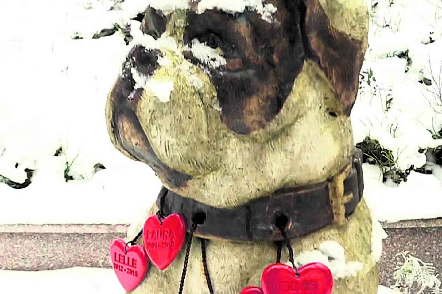 Jų kapą ženklina keturkojo skulptūra ir ant jos kabančios šešios širdelės su augintinių vardais bei datomis.