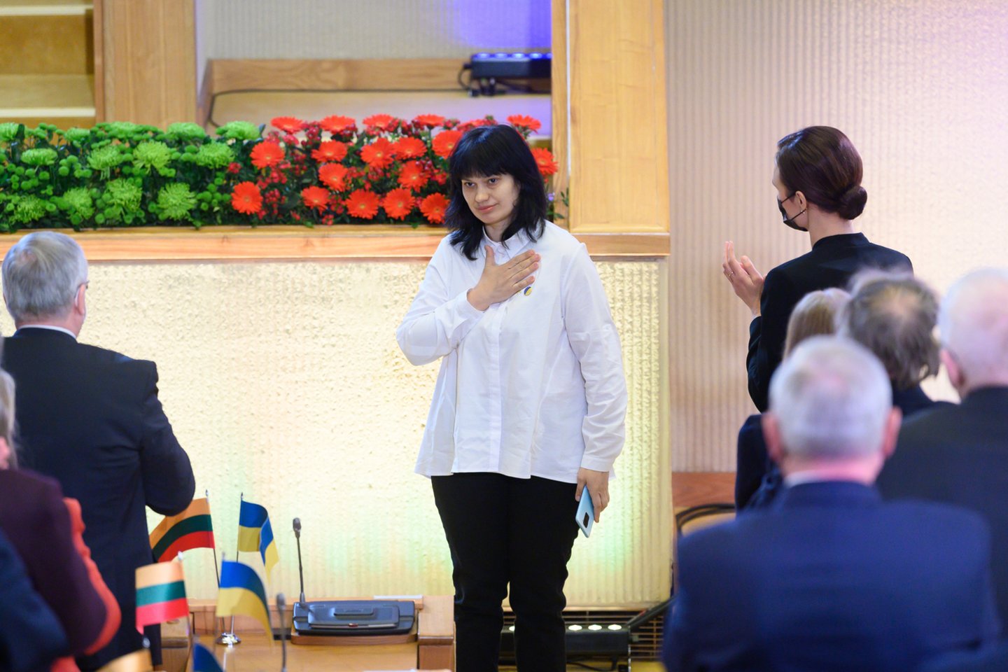 „Man didžiulė garbė būti su jumis tokią ypatingą dieną, – taip savo kalbą per Kovo 11-osios minėjimą Seimo salėje pradėjo ukrainietė. – Prieš aštuonerius metus prasidėjęs karas mūsų gyvenimą padalijo į iki ir po. Su vaikais ilgus mėnesius gyvenome rūsyje, kur nebuvo šviesos, šilumos, dujų, vandens. Mes ne gyvenome, mes bandėme išgyventi, patyrėme tikrą karo siaubą. Tai – baisi patirtis, niekam tokios nelinkėčiau. Matote, kalbu rusiškai, tačiau Rusijos agresoriai kažkodėl už mane nusprendė, kad turi mus gelbėti. Ir jie tai daro naikindami mano šalį.