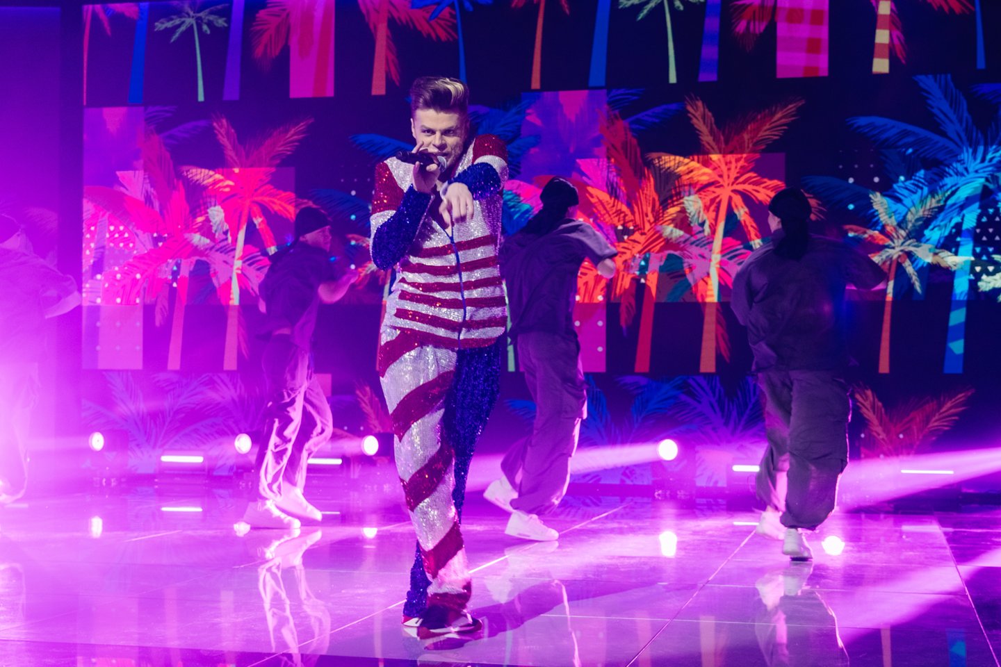Šeštadienio šou kaip tik prasidės nuo įspūdingo komisijos narių įsikūnijimo į legendinę grupę „Queen“. Energingas pasirodymas nustebins ir studijoje susirinkusius projekto žiūrovus, ir vedėjus Arną Ašmoną bei Ugnę Siparę.