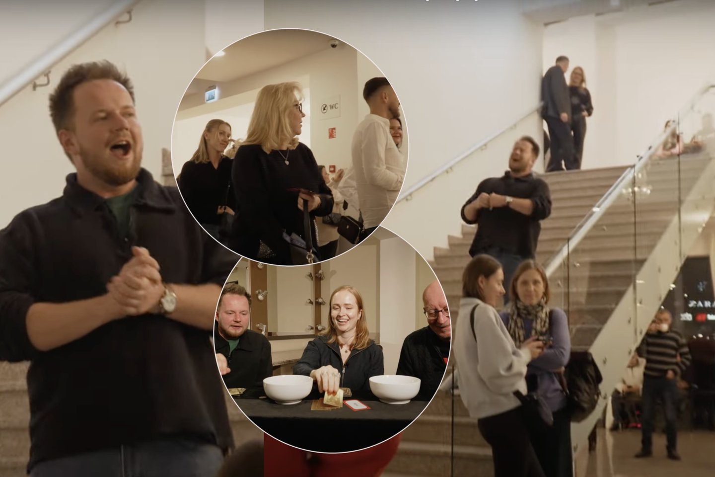 Kone daugiausiai drąsos, linkstančių kelių ir rizikos suabejoti komiko psichine sveikata pareikalavusi užduotis ir vėl teko Mantui. Iššūkis buvo tikrai nelengvas – prieš spektaklį išeiti į foje ir besirenkančiai publikai nei iš šio, nei iš to sudainuoti hitą „O, gražuole“. Kaip tai atrodė ir kokių žmonių reakcijų sulaukė komikas, patys galite išvysti vaizdo įraše.