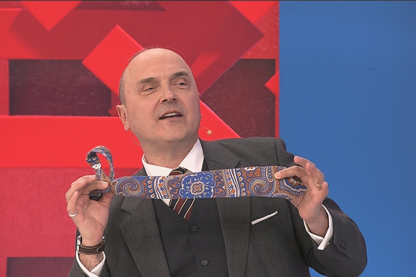 O komikas ir aktorius Slavka netikėtai iš kišenės išsitraukė margą kaklaraištį.