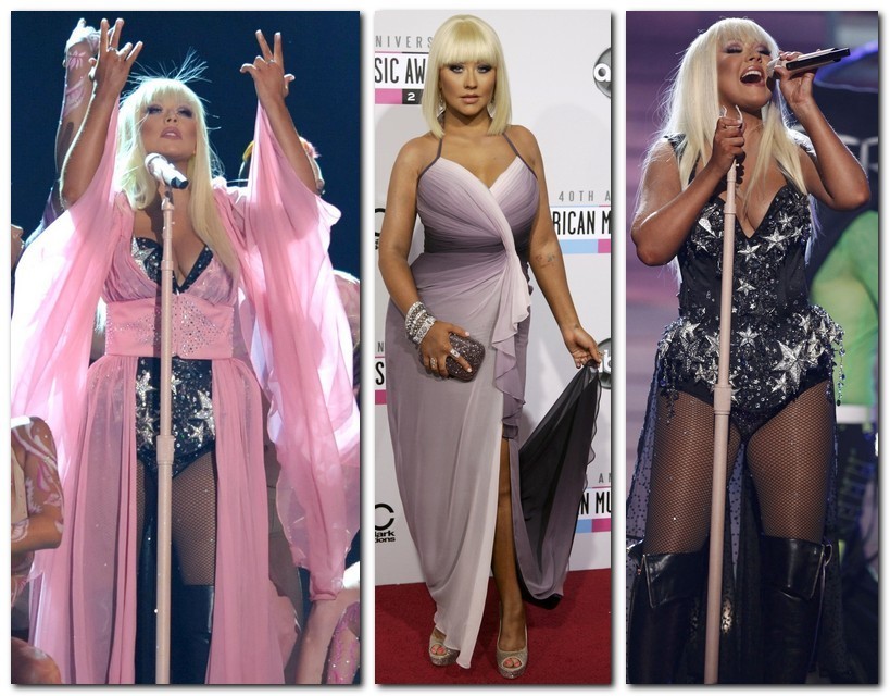 Iš pradžių ant scenos Christina pasirodė vilkėdama rožinę karpytą suknelę, kuri vos dengė korsetą. Būtent šis apdaras ir buvo pagrindinis atlikėjos sceninis drabužis.