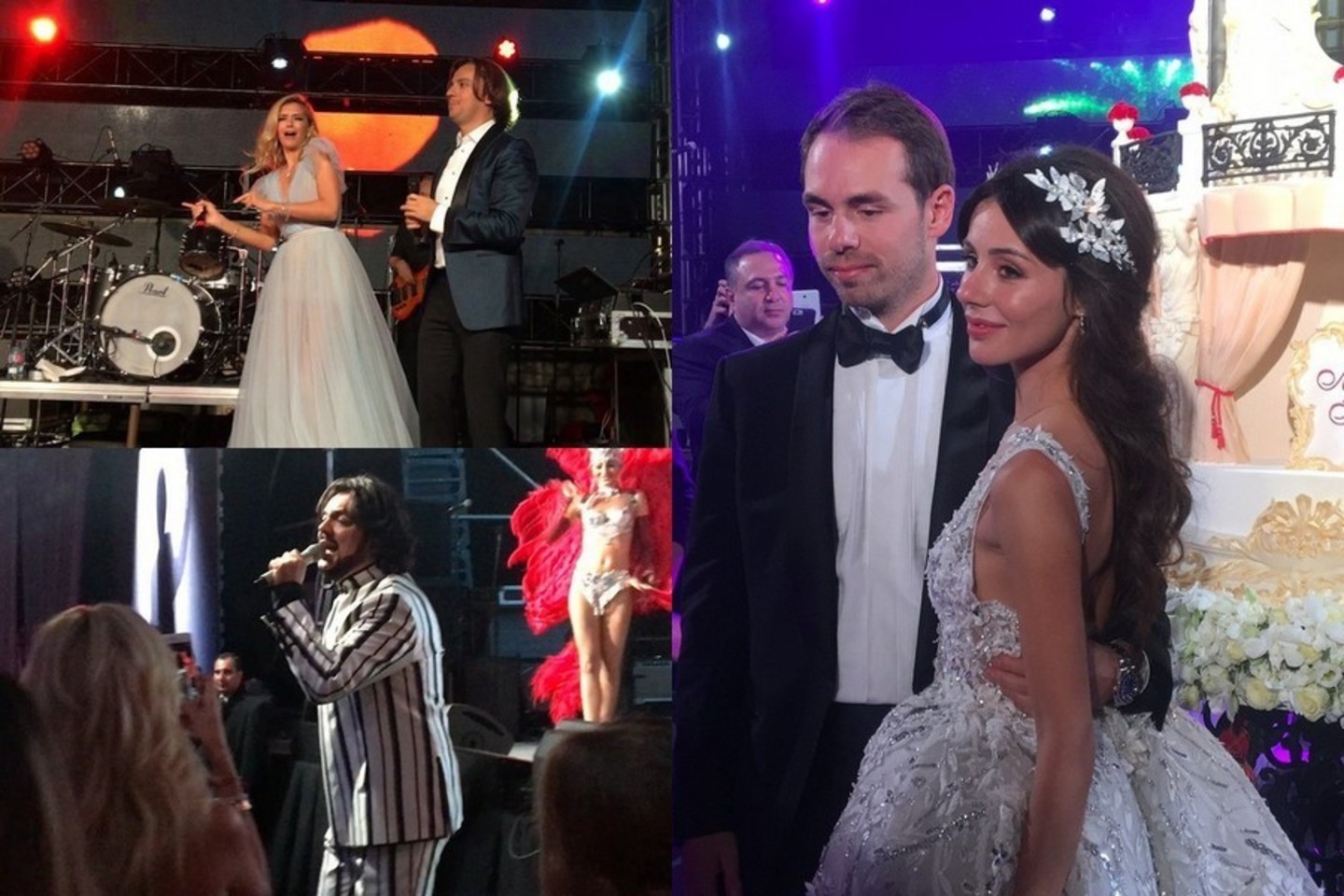 Didžiuliuose ekranuose svečiams parodyta jausminga jaunavedžių meilės istorija, iš kurios susirinkusieji sužinojo, kad kukli Nata Pchakadzė su milijardinio palikimo paveldėtoju Mika Čigirinskiu susipažino daugiau kaip prieš trejus metus. Maskvos turčių sluoksniuose pora vadinama viena gražiausių ir tvirčiausių.