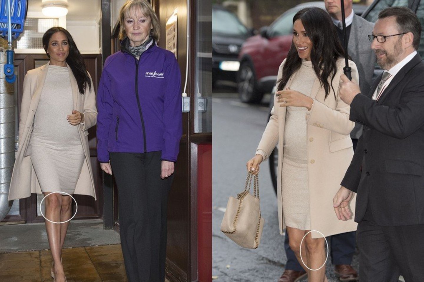 Pasak tokiose fotografijose įsiamžinusių asmenų (tiek vyrų, tiek ir moterų), ant jų ir Meghan kelių yra įmanoma įžvelgti kūdikio atvaizdą.