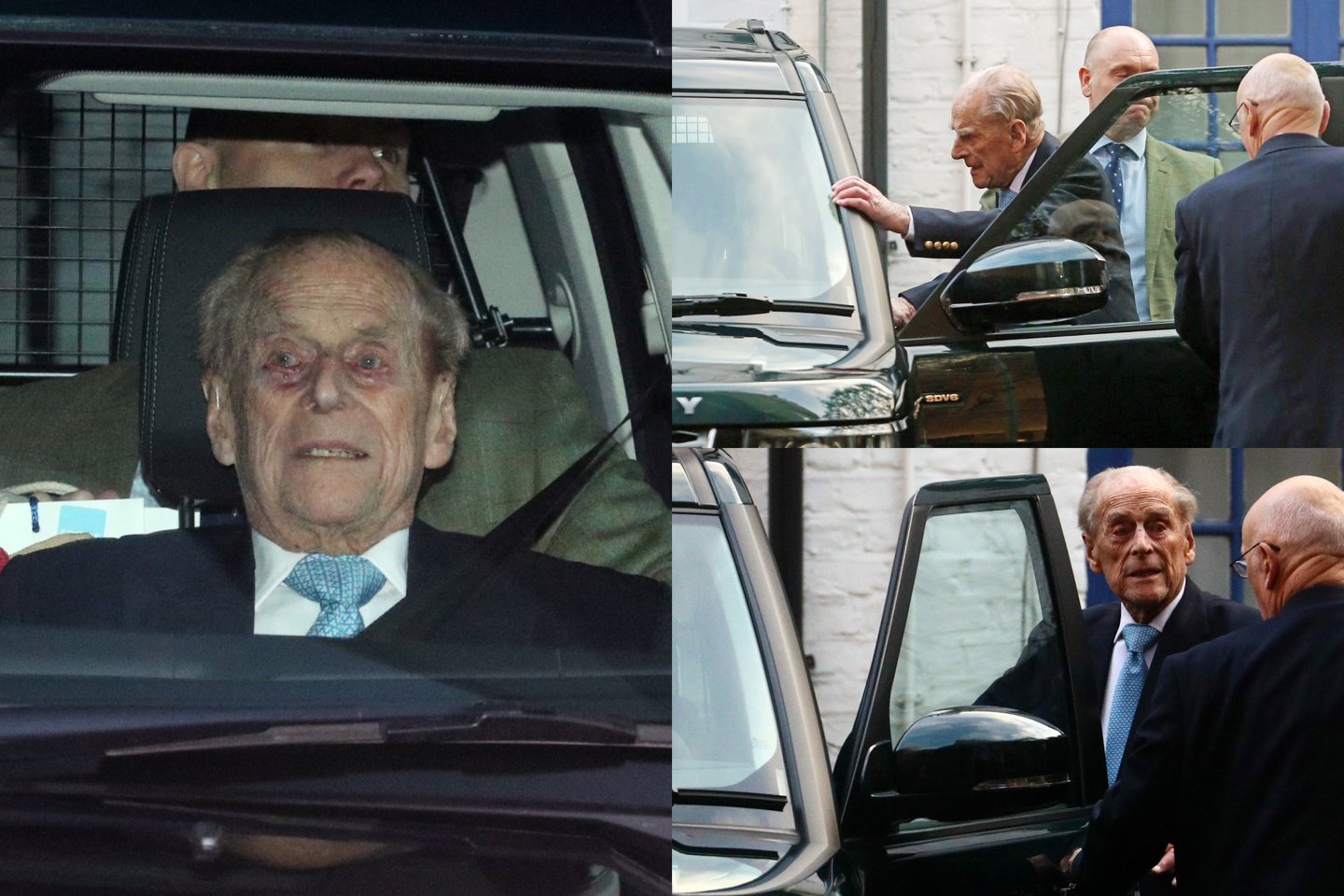 Britų žiniasklaida paskelbė nuotraukų, kuriose matomas kostiumą vilkintis karalienės Elizabeth II sutuoktinis, lipantis į automobilį.