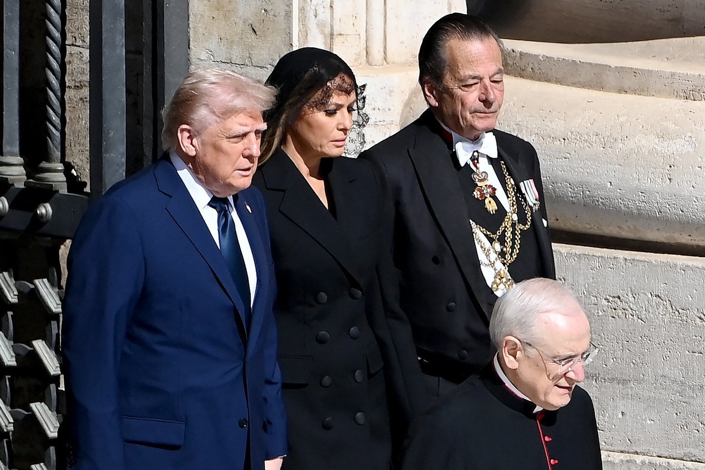Pirmojoje eilėje sėdėjo 78-erių metų JAV prezidentas ir jo žmona Melania, kurios 55-asis gimtadienis sutapo su popiežiaus laidotuvėmis. Jie į Romą atvyko vėlai vakare.