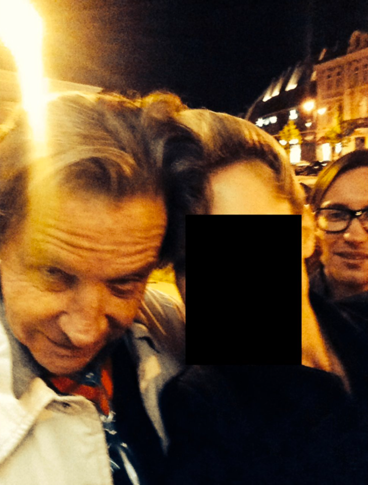 Paviešintas kadras darytas naktį – jame matyti trys asmenys: moteris, kurios veidas uždengtas juodu kvadratu, ir du vyrai. Identifikuojama, kad kairėje nuotraukos pusėje – J. L. Brunelis, dešinėje – renginių organizatorius V. Petreikis.