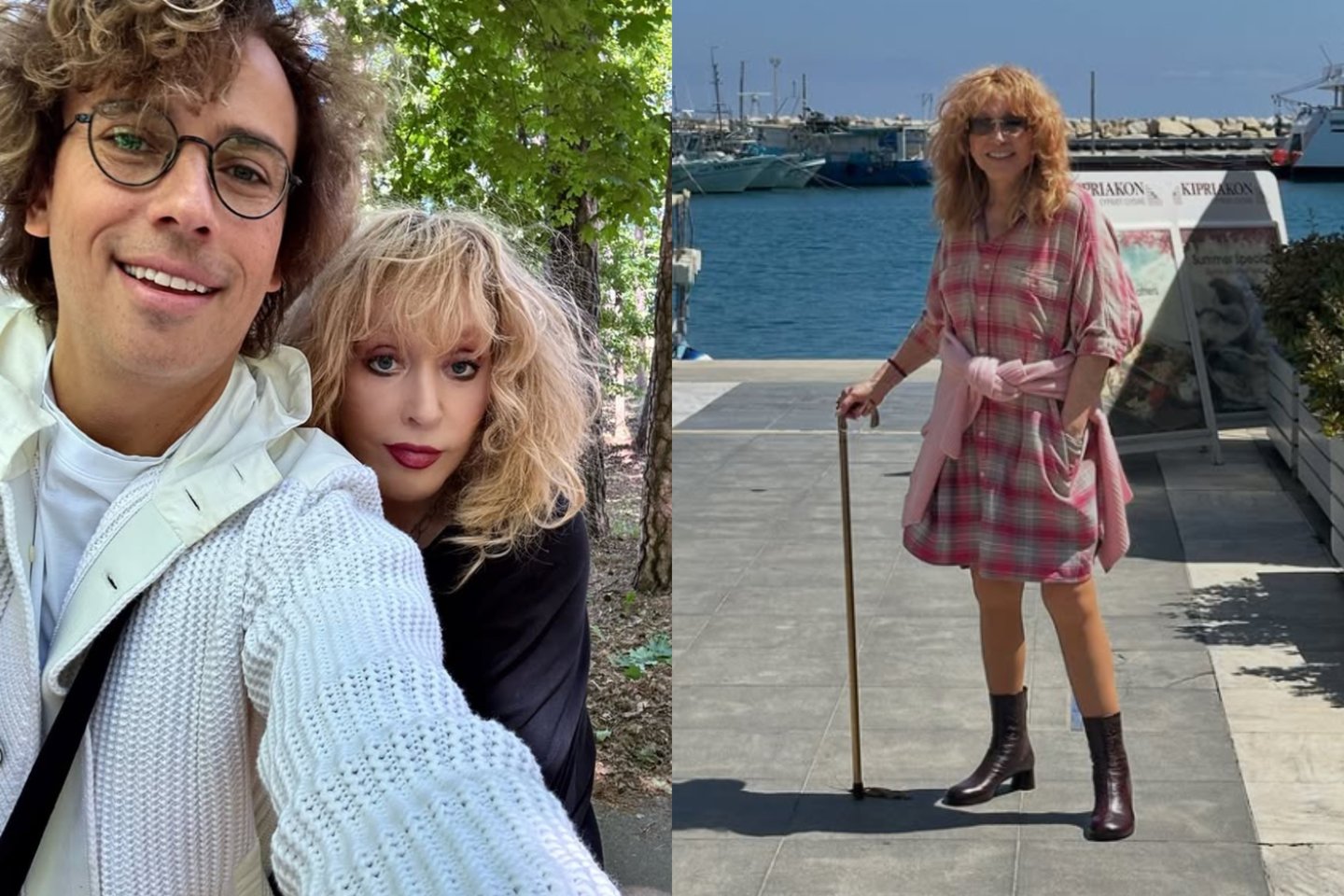 Joje A. Pugačiova įamžinta Kipre, jūros fone. Atlikėja atrodė itin pozityviai nusiteikusi – jos veidą puošė plati šypsena.