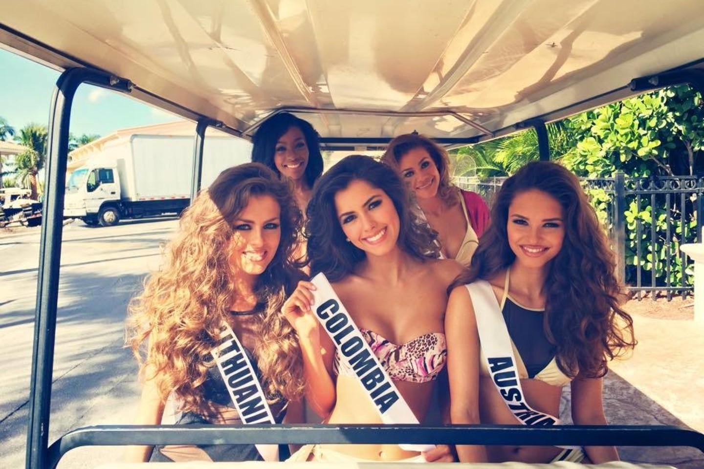 P.Belousova kartu su Paragvajaus, Kolumbijos, Austrijos ir kitų šalių gražuolėmis fotografams pozavo vilkėdamos maudymosi kostiumėlius. Lietuvė per fotosesiją pasipuošė stilingu vientisu maudymosi kostiumėliu.