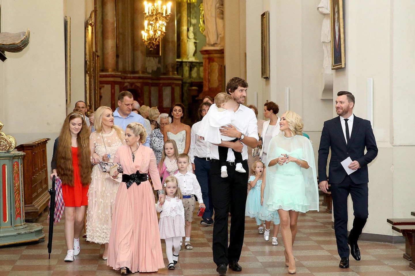 Vos atvykusius į bažnyčią laimingus tėvelius ir Dominyką pasveikino S.Jasaičio sesuo Aistė Jasaitytė-Čeburiak. Krikštynos buvo surengtos tik artimiausių žmonių apsuptyje, tad pramogų pasaulio žvaigždžių čia nebuvo.