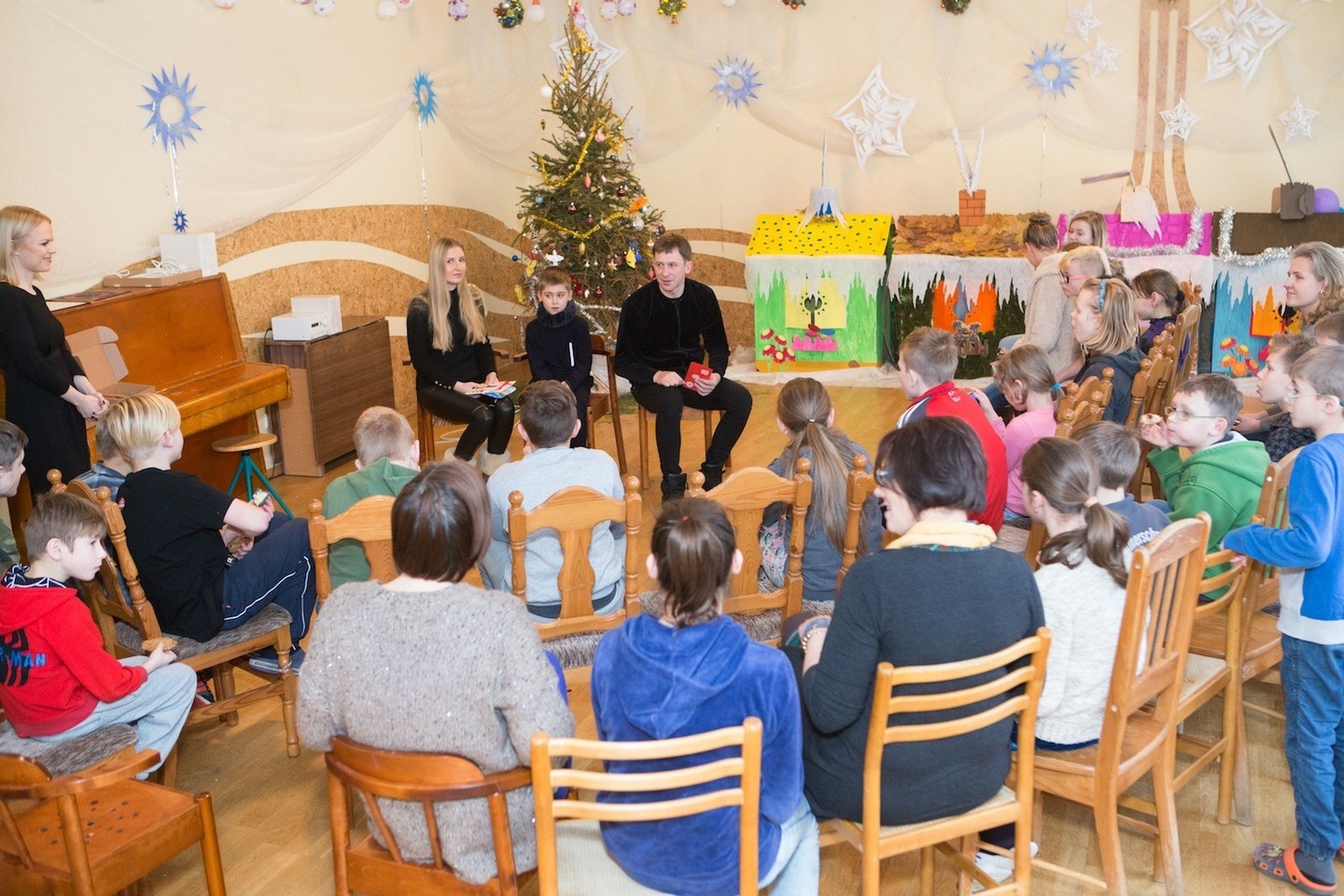 E.Dragūnas atvyko kartu su Eleonora Sebrova ir sūnumi Deivydu. Visi kartu jie bendravo su vaikais, pasveikino su praėjusiomis šventėmis. Dauguma vaikų taip pat norėjo asmeniškai pasveikinti svečius – dovanojo savo piešinius ir atvirukus.