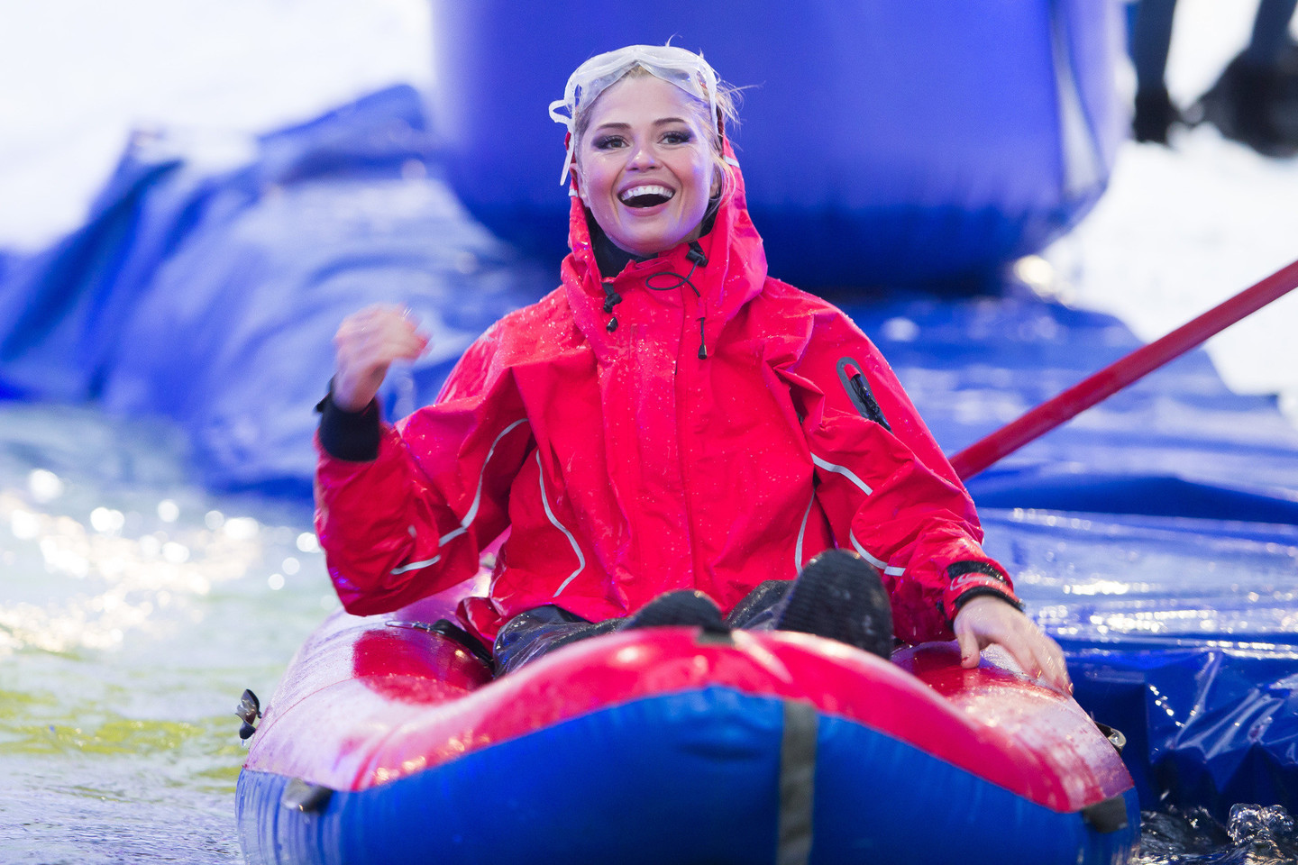 Varžytis su vyrais galiūnas nebepanoro – išskubėjo šildytis, o štai J.Leonavičiūtę pagavo azartas, todėl ji nusprendė pasivaržyti su „Snow Kayak“ dalyvėmis. Po pirmojo nusileidimo patekusi į pusfinalį, moteris jame nusileido kitoms varžovėms ir liko už finalo borto.