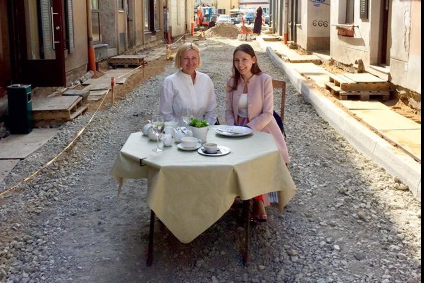 Tačiau tai nesutrukdė ekonomistėms Kaetainai Leontjevai-Numavičienei ir Rūtai Vainienei lauke pietauti. Besišypsančios ir pasipuošusios moterys įamžino šią akimirką.