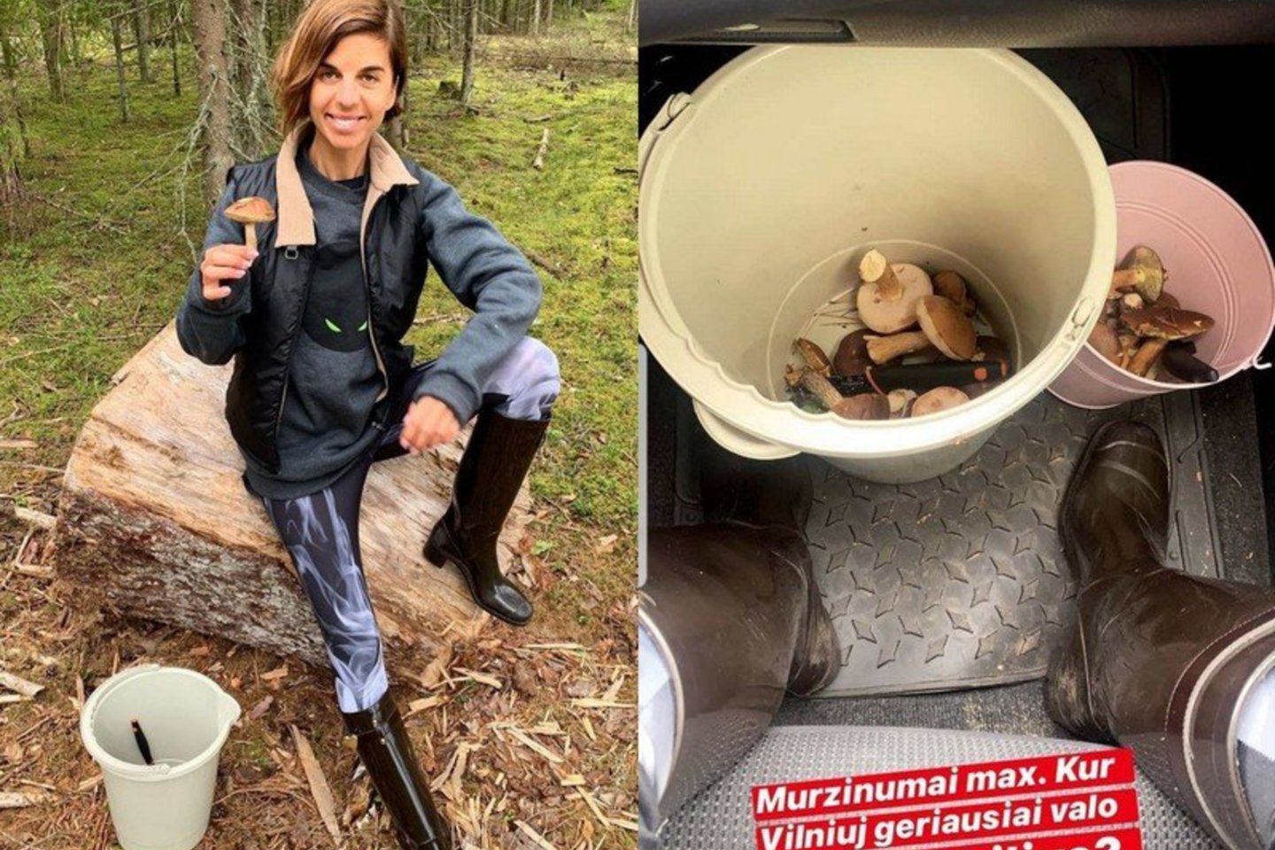 Susipažinkite – čia mano pirmasis laimikis! Tikiuosi nenuodingas! Sekmadienis užskaitytas“, – rašė stilingoji grybautoja.