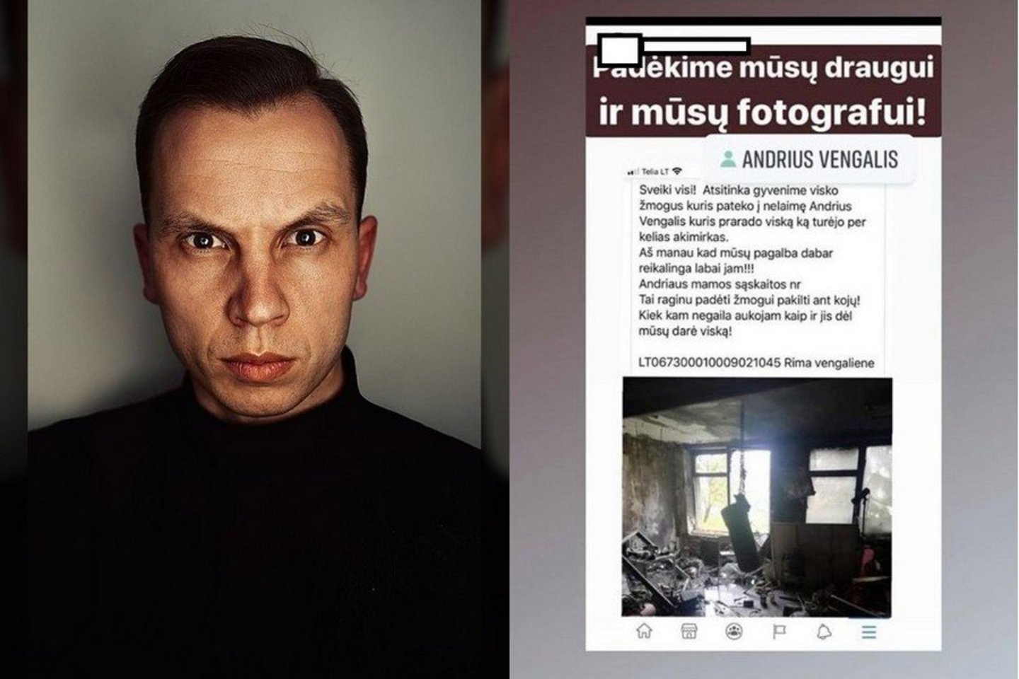 Ten publikuojamos sudegusios klaipėdečio studijos nuotraukos, prašoma menininkui padėti ir vėl atsistoti ant kojų.