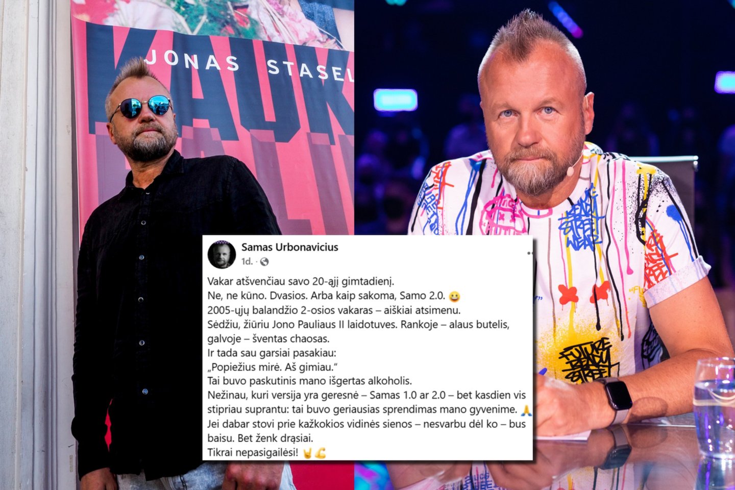 „Vakar atšvenčiau savo 20-ąjį gimtadienį. Ne, ne kūno. Dvasios. Arba kaip sakoma, Samo 2.0. 2025-ųjų balandžio 2-osios vakaras – aiškiai atsimenu. Sėdžiu, žiūriu Jono Pauliaus II laidotuves. Rankoje – alaus butelis, galvoje – šventas chaosas“, – prisiminimais socialinio tinklo paskyroje dalijosi S. Urbonavičius.