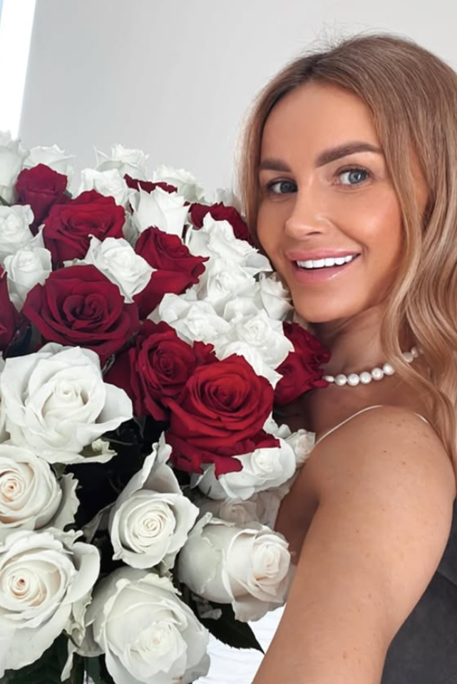 Kiek vėliau socialinių tinklų žvaigždė paviešino akimirką, kurioje atrodo tiesiog švytinti, o glėbyje didelė įvairiaspalvių rožių puokštė.