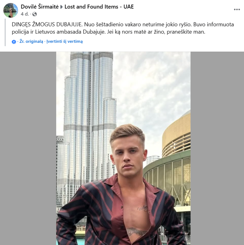 Nemažai kadrų jis yra publikavęs ir iš Dubajaus – būtent ten jis ir dingo, kol kas, be žinios.