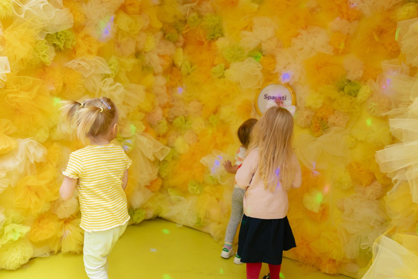 „Visoms emocijoms išreikšti kruopščiai parinktos spalvos, formos, garsai ir kiti pojūčius žadinantys sprendimai. Be to, instaliacijose gali dalyvauti visa šeima, parašyti savo patarimus, žymėti džiaugsmo lygį, pasimatuoti emociją ir kitaip smagiai leisti laiką drauge,“ – pasakoja A. Blandė.
