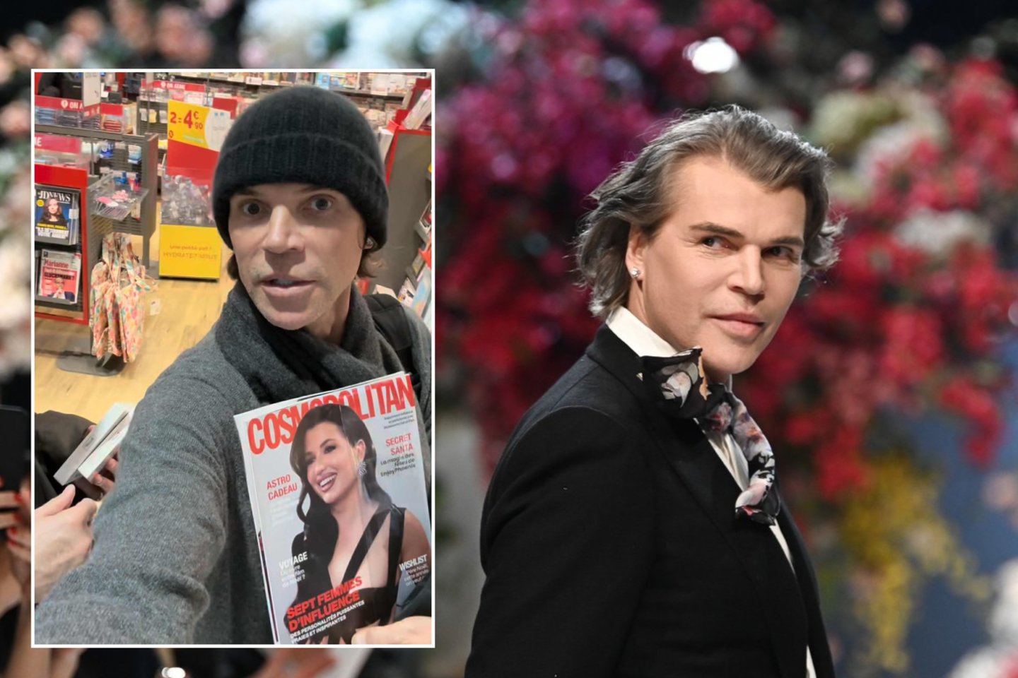 „Va, Paryžiaus oro uoste su liudininkais radau žurnalą, ant kurio viršelio – mano suknelė“, – į kamerą kalbėjo jis.
