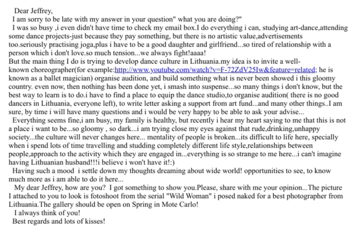 2019 m. sausio 20 d. Valdas Petreikis rašė: „Tikiuosi, kad jums sekasi gerai. Esu Simonos vyras, Jeffrey paprašė su jumis susisiekti dėl galimo susitikimo su juo kitą savaitgalį, jei jis vis dar bus Paryžiuje. Tokiu atveju atvykčiau traukiniu iš Ženevos, jei būtų galimybė su juo susitikti.“