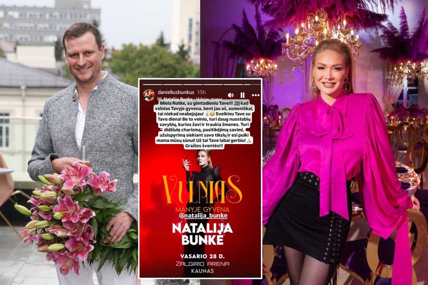 Socialiniame tinkle „Instagram“ D. Bunkus paviešino įrašą, kurį lydėjo šiltas sveikinimas N. Bunkei.