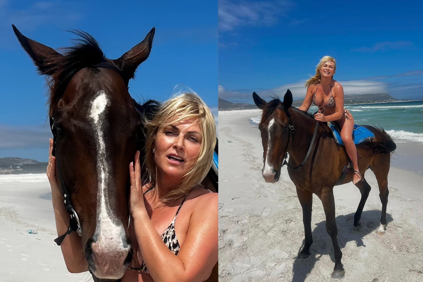 Balto smėlio paplūdimys, kalnai, vandenyno bangos ir mudu su žirgu. Palaima“, – šalia nuotraukų brūkštelėjo ji.