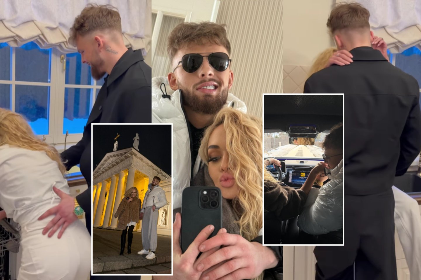 Dar viena dėmesį patraukusi akimirka – iš automobilio. Joje D. Dirkstys švelniai bučiuoja mylimajai ranką, o O. Pikul šypsosi.